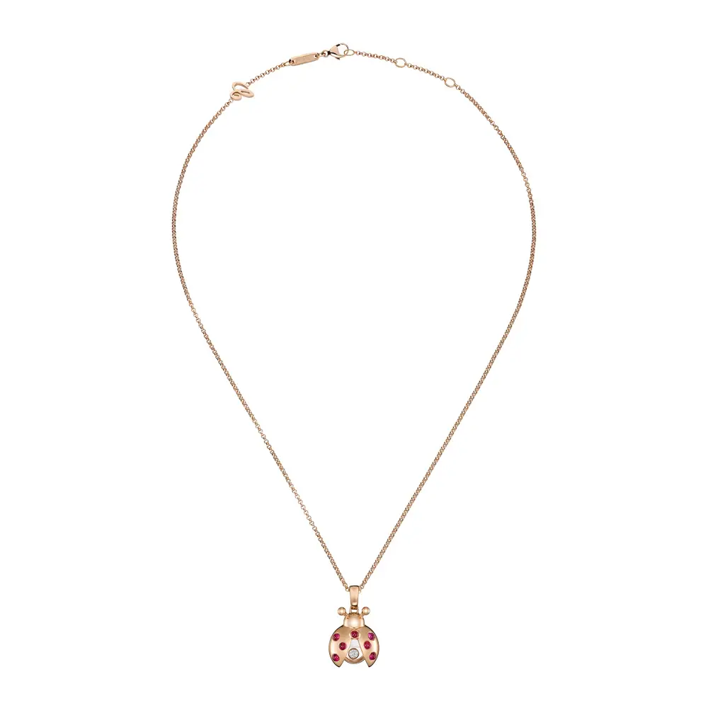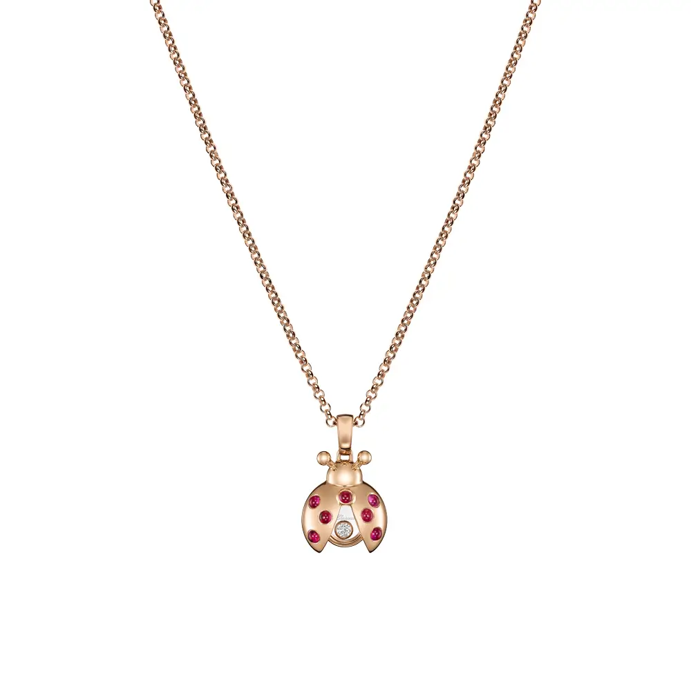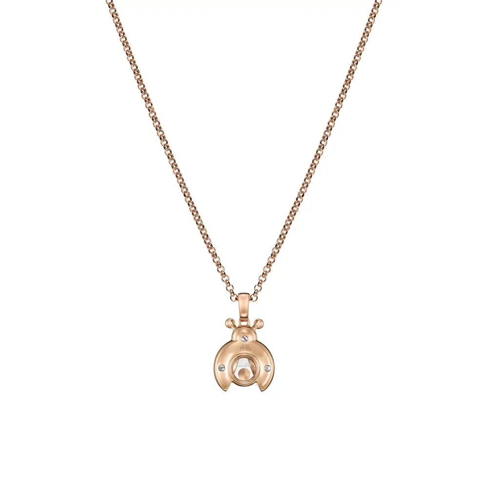 Chopard Happy Diamonds Ladybird Přívěsek 79A186-5001 je hravý a přitom mimořádně elegantní šperk, který v sobě spojuje luxusní zpracování s něžným přírodním motivem. Vyroben z 18kt růžového zlata (ryzost 750/1000) s dokonale lesklým povrchem, představuje jemný symbol štěstí v podobě ikonické berušky, která se stává výrazným detailem každého outfitu.
