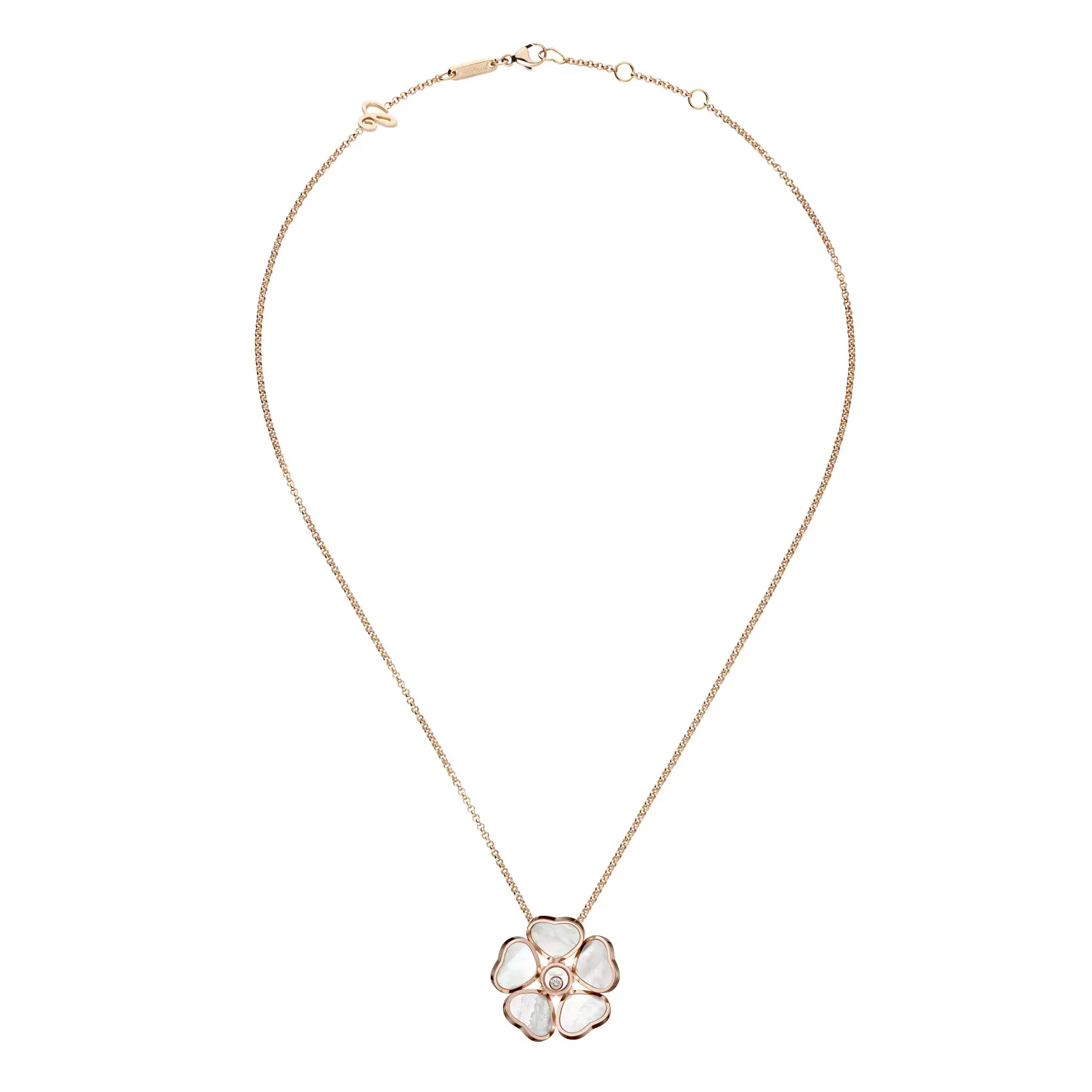 Přívěsek je zavěšen na elegantním řetízku o délce 45 cm, díky čemuž působí jemně, ale zároveň výrazně. Každý detail odhaluje mistrovské zpracování značky Chopard, které spojuje hravý design s nadčasovou elegancí. Tento šperk je symbolem ženské radosti, lásky a lehkosti bytí, ideální pro ženy, které chtějí nosit kousek světla a optimismu každý den.