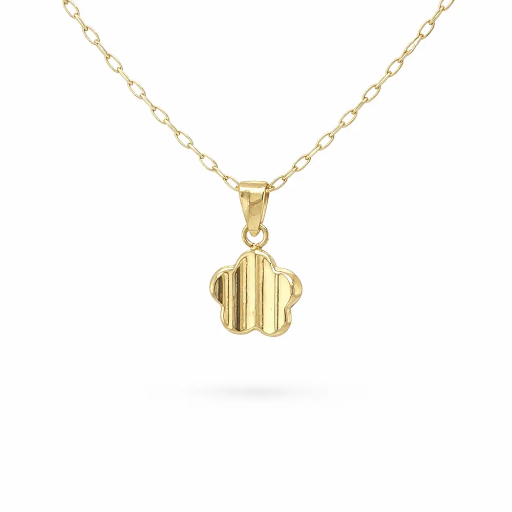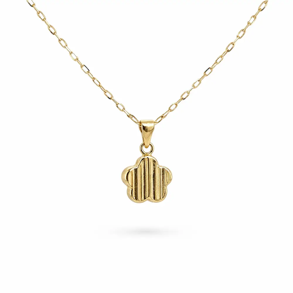 Tento zlatý přívěsek ve tvaru čtyřlístku je jemným symbolem štěstí, harmonie a pozitivní energie. Elegantní silueta doplněná decentní strukturou povrchu dodává šperku nadčasový vzhled, který se hodí ke každodennímu nošení i ke slavnostnějším příležitostem.