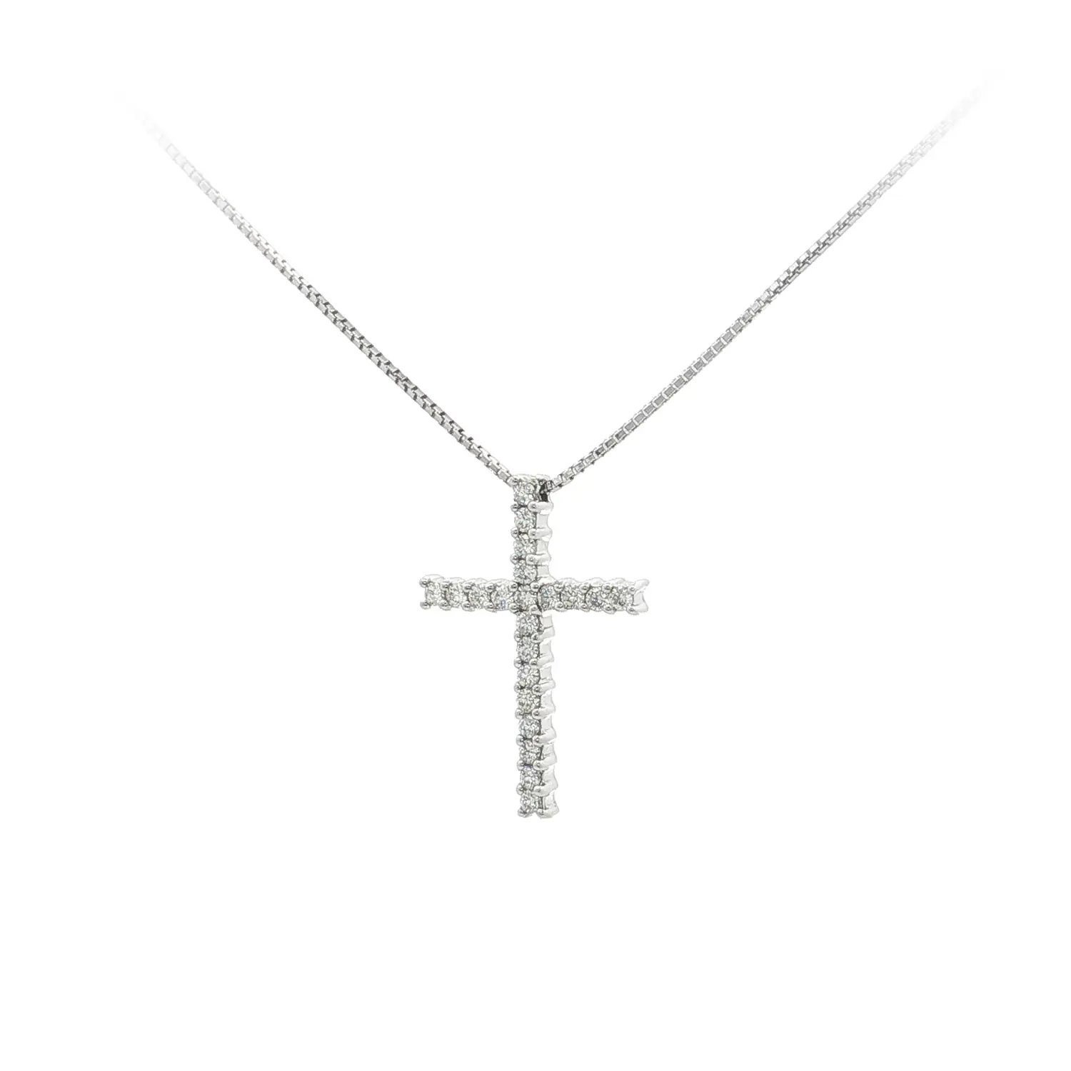 Tento elegantní přívěsek ve tvaru kříže z bílého zlata je symbolem víry, čistoty a nadčasové krásy. Každé rameno kříže je osazeno briliantově broušenými diamanty, které zachycují světlo s mimořádnou intenzitou a vytvářejí jemný, avšak okouzlující třpyt. Jeho minimalistický design umožňuje snadné kombinování s dalšími šperky, přičemž sám o sobě působí elegantně a výjimečně.