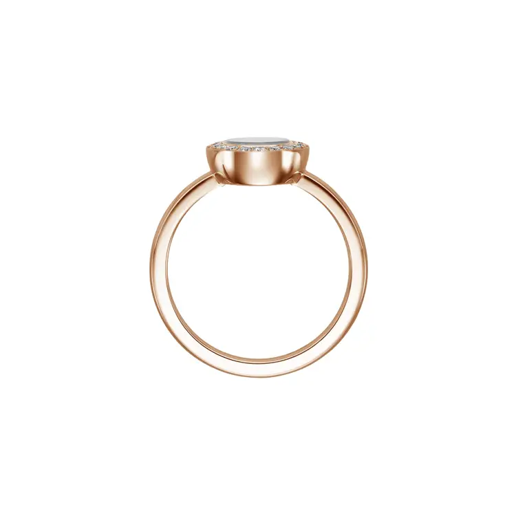 Chopard Happy Diamonds Prsten 82A017-5210 je výjimečný šperk, kde se snoubí hravá romantika s výjimečným luxusem. Model je vyrobený z 18kt růžového zlata (ryzost 750 / 1000) s precizně lesklým povrchem, který šperku propůjčuje něžný a přitom výrazný vzhled.