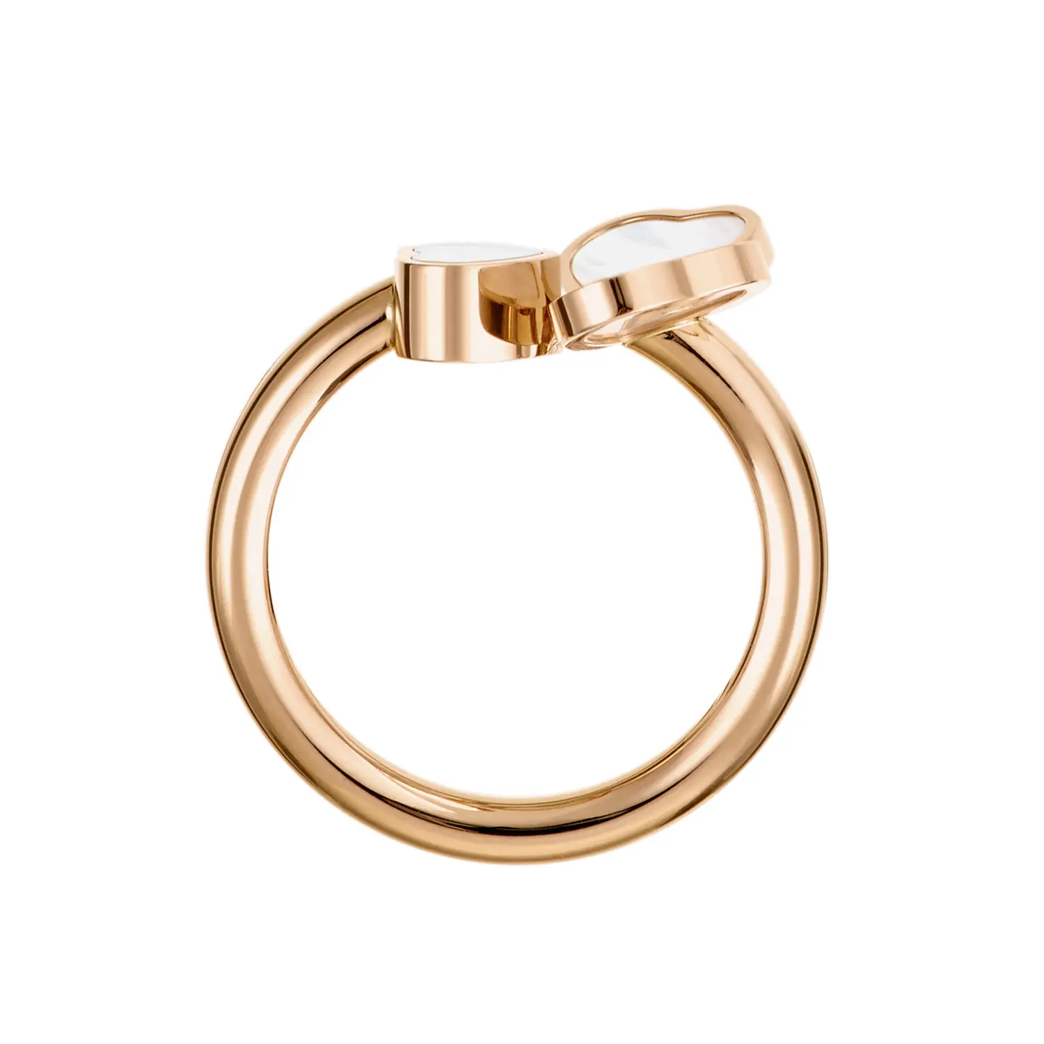 Prsten Chopard Happy Hearts Wings 82A083-5312 je symbolem lehkosti, radosti a ženské elegance. Vyroben z 18karátového etického růžového zlata, zdobí jej dva motivy srdcí z bílé perleti a volně pohybující se diamant o hmotnosti 0,05 ct, který září při každém pohybu. Design inspirovaný tvarem motýlích křídel vyjadřuje svobodu a přirozenou krásu, která je pro tuto kolekci typická.