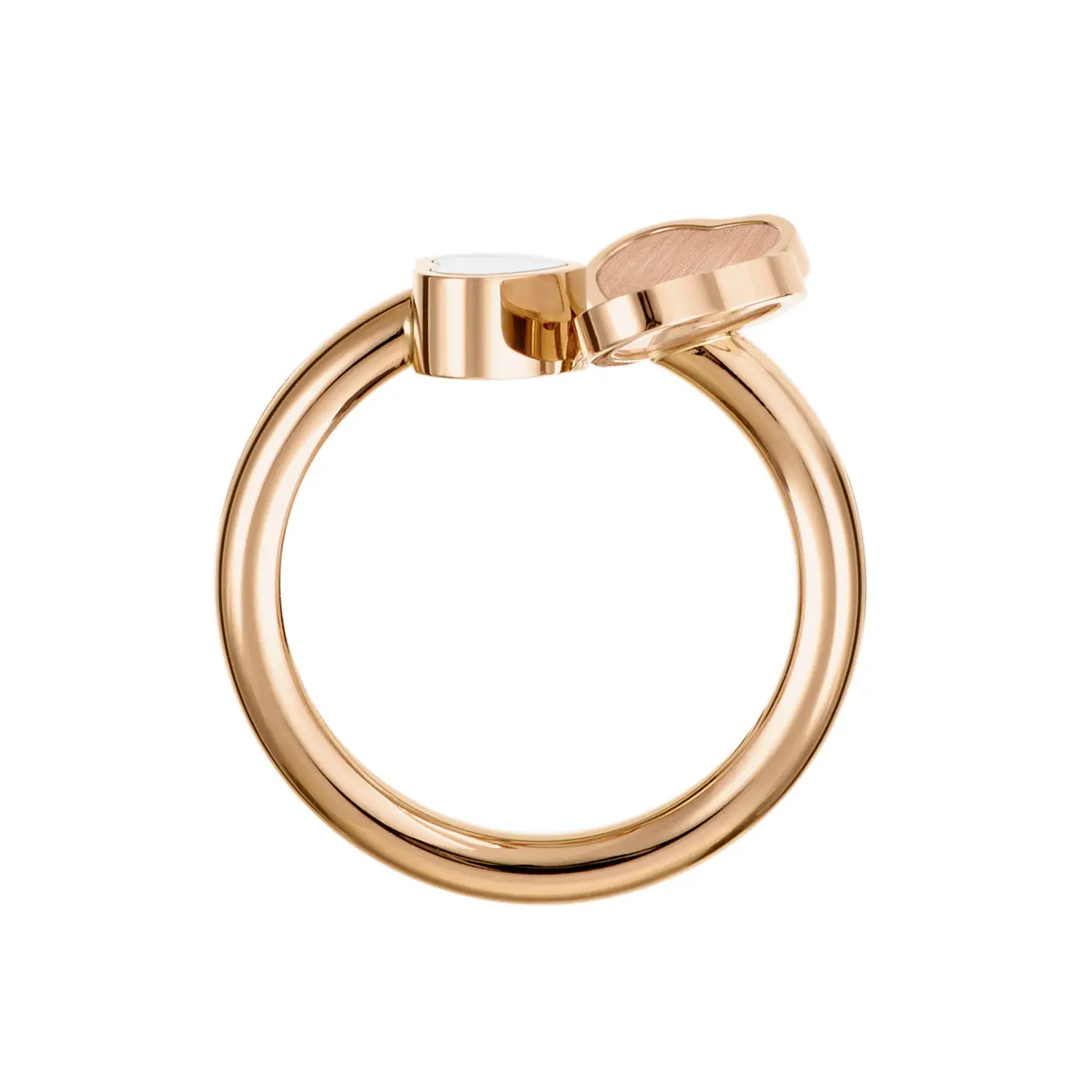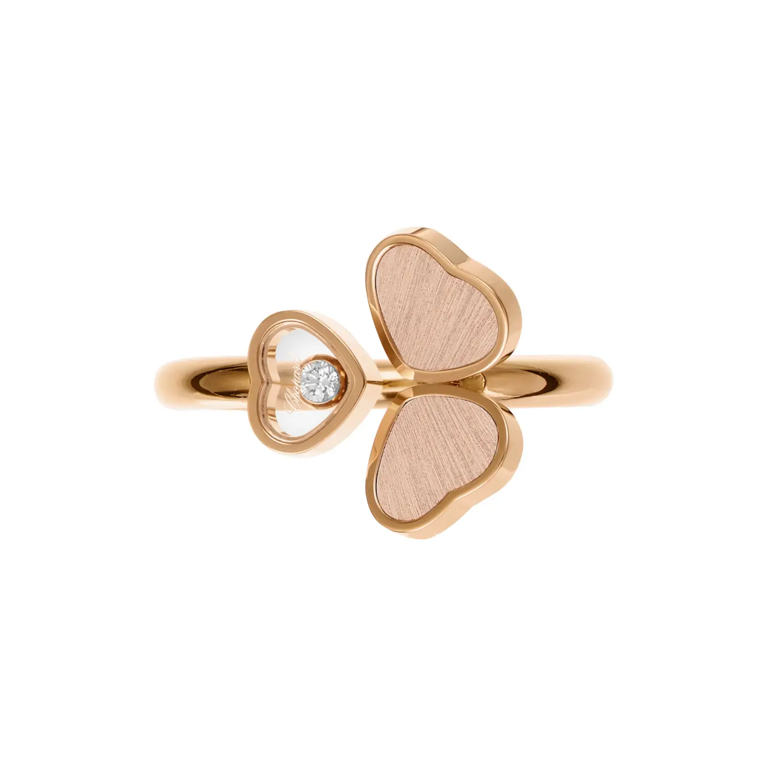 Chopard Happy Hearts Prsten 82A083-5710 vás zvábí svou čistou elegancí a něžným romantickým motivem. Tento nadčasový šperk je vyroben z 18 karátového růžového zlata (ryzost 750/1000) s dokonalým lesklým povrchem, který působí jemně, a přitom výrazně.