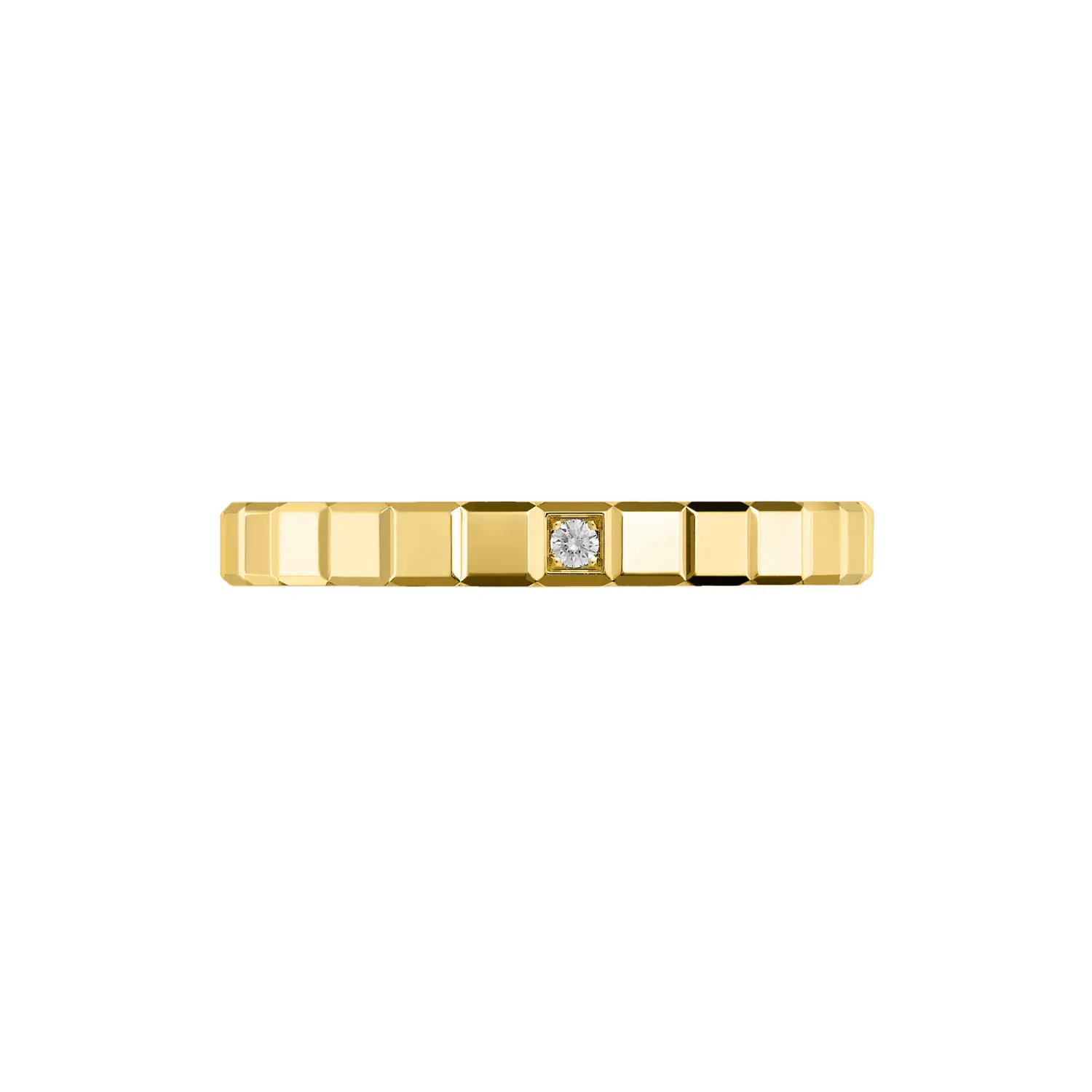 Prsten Chopard Ice Cube Pure z 18k etického žlutého zlata představuje moderní pojetí elegance v její nejčistší formě. Jeho ikonický design inspirovaný tvarem krychle odráží světlo v každém pohybu a vytváří efekt drobných zlatých odlesků. Minimalistický tvar je doplněn jemnými diamanty o celkové hmotnosti přibližně 0,01 ct, které dodávají šperku decentní jiskru, aniž by narušily jeho harmonickou jednoduchost.