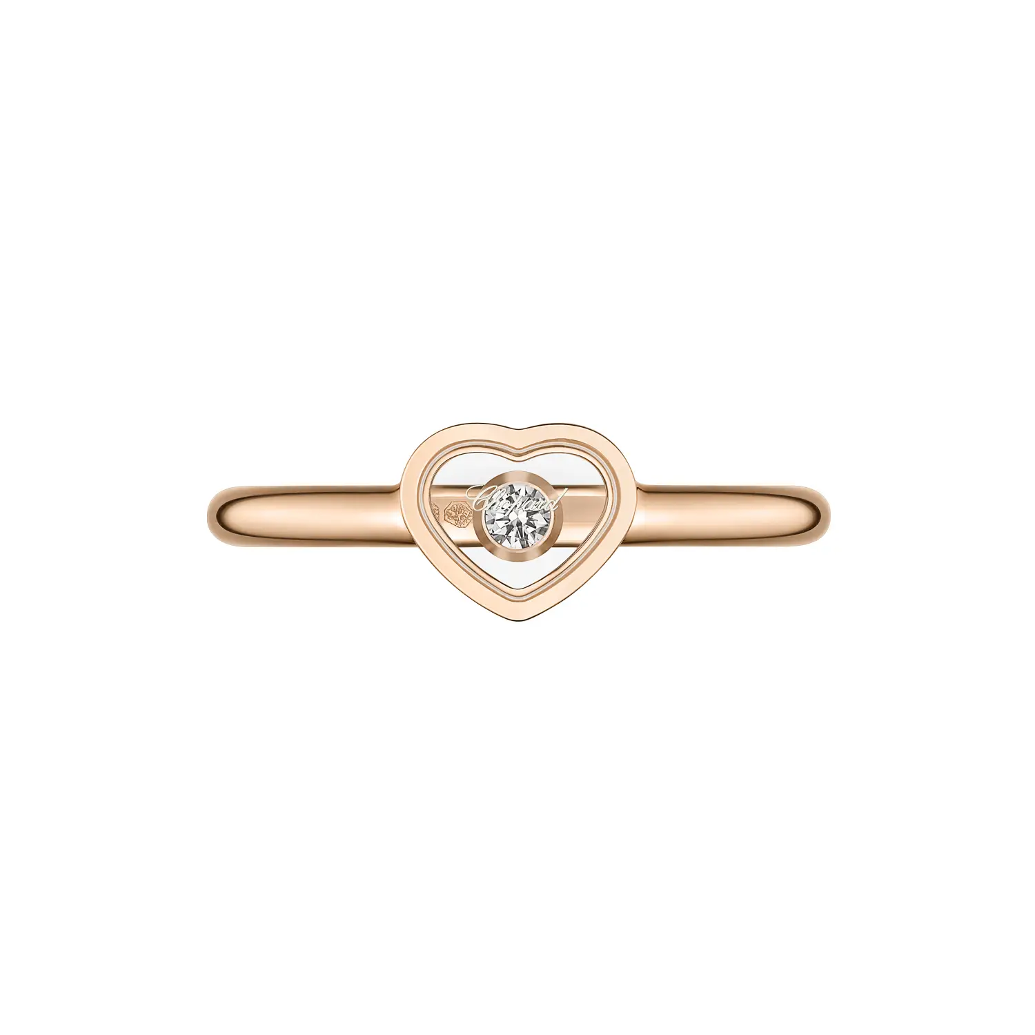 Prsten Chopard My Happy Hearts 82A086-5010 vyzařuje něžnost, radost a moderní eleganci. Vyroben z 18karátového etického růžového zlata, představuje jemnou interpretaci ikonického srdce značky Chopard. Uprostřed otevřeného motivu srdce se volně pohybuje brilantní diamant, který při každém pohybu zachytává světlo a dodává šperku hravý, živý charakter – typický znak kolekce My Happy Hearts.