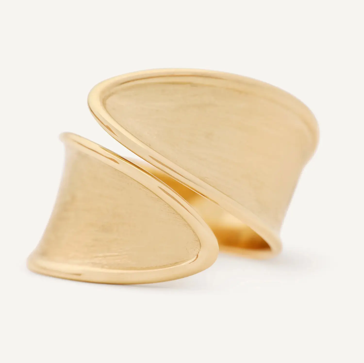 Povrch prstenu je zdoben tradiční ruční rytinou bulino (millerighe), která dodává zlatu jemnou saténovou texturu a umožňuje mu přirozeně odrážet světlo. Charakteristickým prvkem designu je také kontrast mezi matným rytým povrchem a leštěnými okraji, který zvýrazňuje elegantní tvar a strukturu prstenu.