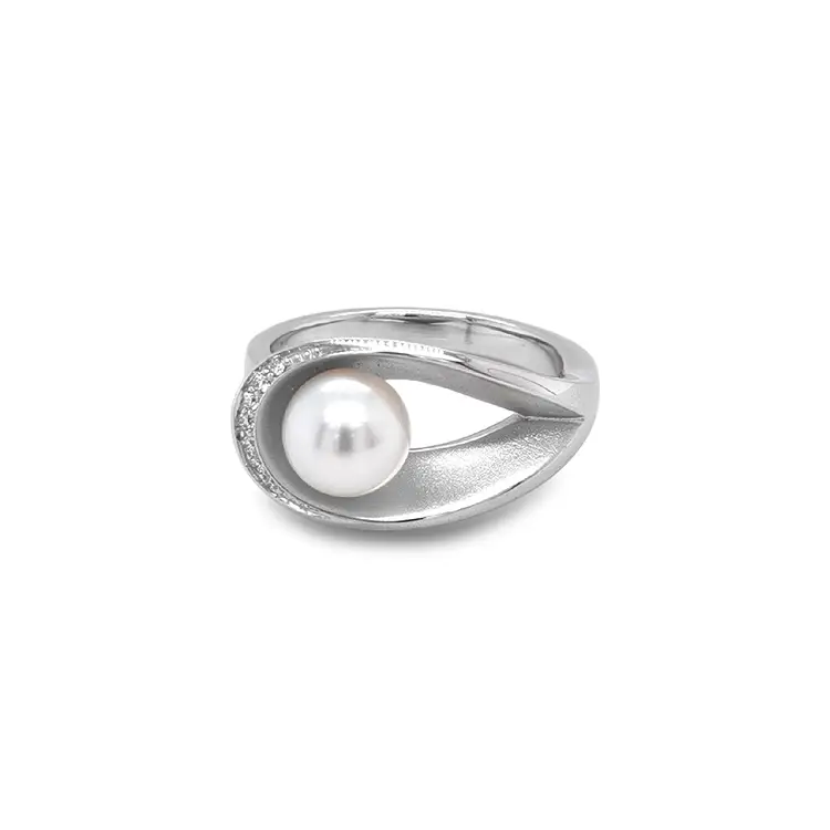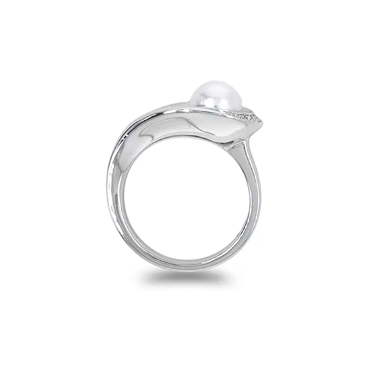 Zlatý Prsten Přírodní Perla a Diamanty