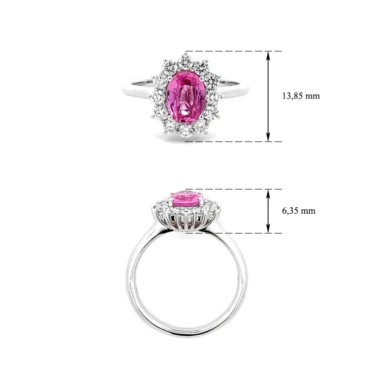 Zlatý Prsten Růžový Safír a Diamanty