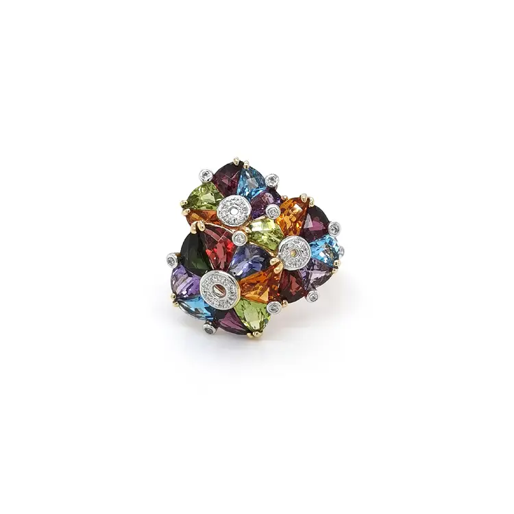 Zlatý Prsten s Diamanty a Polodrahokamy