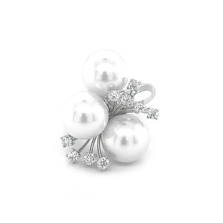 Zlatý Prsten s Přílodnými Perly a Diamanty