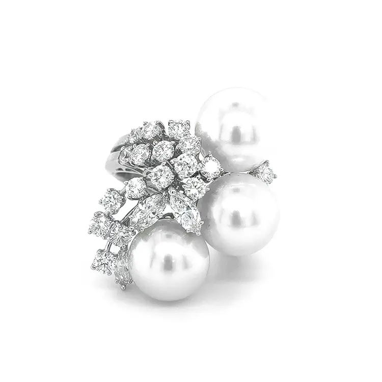 Zlatý Prsten s Přírodnými Perly a Diamanty