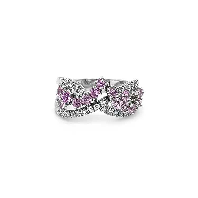 Zlatý Prsten s Růžovými Safíry a Diamanty