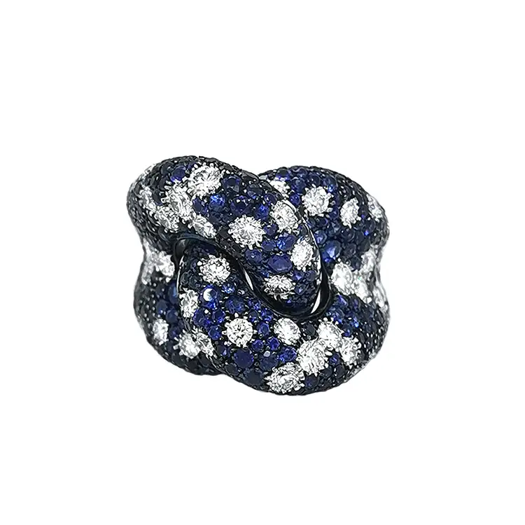 Centrem kompozice je přírodní modrý safír o váze 4,20 ct v kulatém brusu, jehož sytý odstín dodává prstenu hloubku a kouzlo. Výrazný střed doplňuje pavé z 36 přírodních bílých diamantů o celkové váze 1,70 ct, v kulatém brusu o rozměru 3,20 mm, s čistotou SI a barvou G. Precizní osazení a kontrast safíru s diamanty zdůrazňují noblesní charakter tohoto šperku, který dokonale doplní večerní outfit a podtrhne výrazný, sofistikovaný a luxusní styl nositelky.