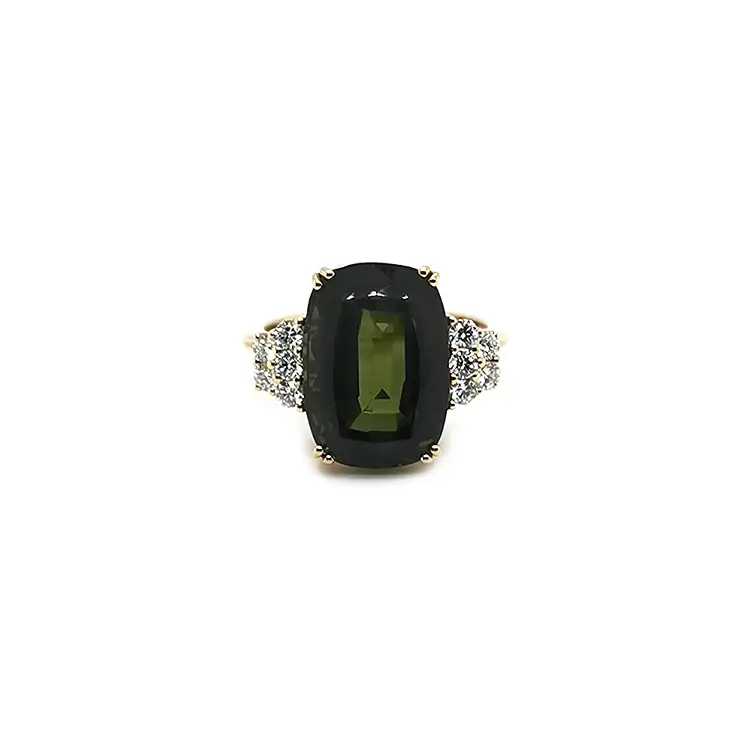 Zlatý Prsten se Zeleným Turmalínem a Diamanty