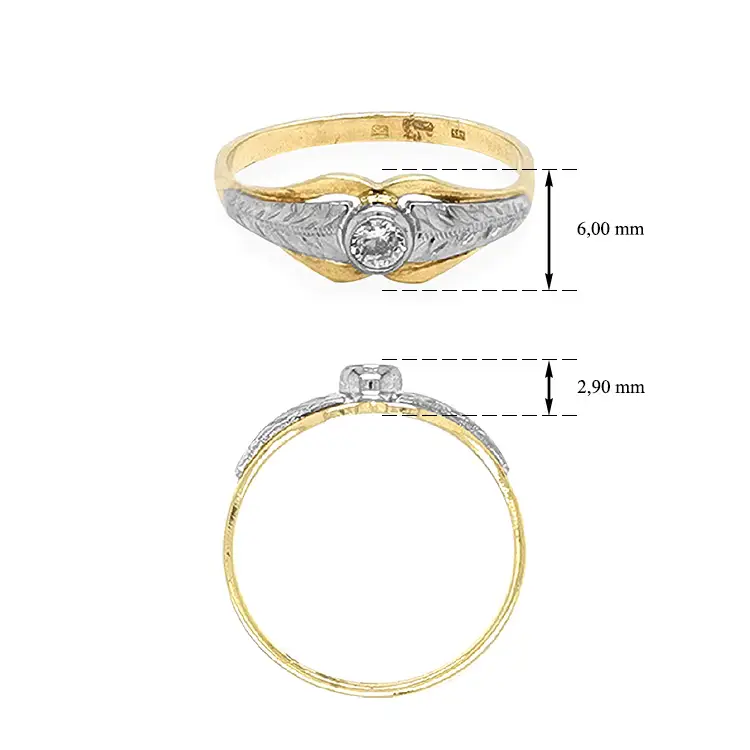 Zlatý Prsten se Zirkonem z Kombinovaného Zlata