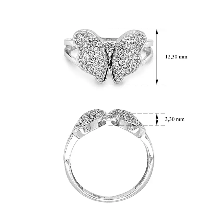 Zlatý Prsten se Zirkony ve Tvaru Motýla