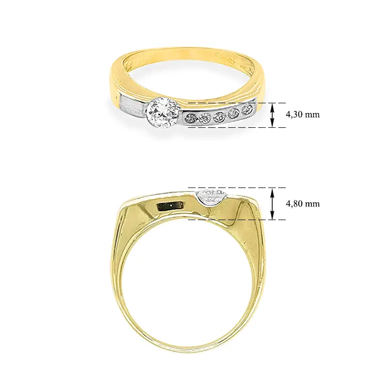 Zlatý Prsten se Zirkony z Kombinovaného Zlata