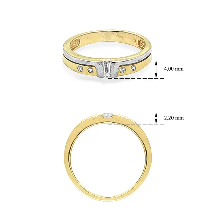 Zlatý Prsten se Zirkony z Kombinovaného Zlata