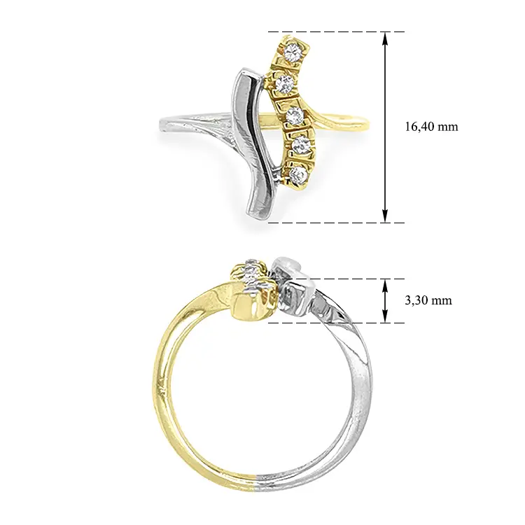 Zlatý Prsten se Zirkony z Kombinovaného Zlata