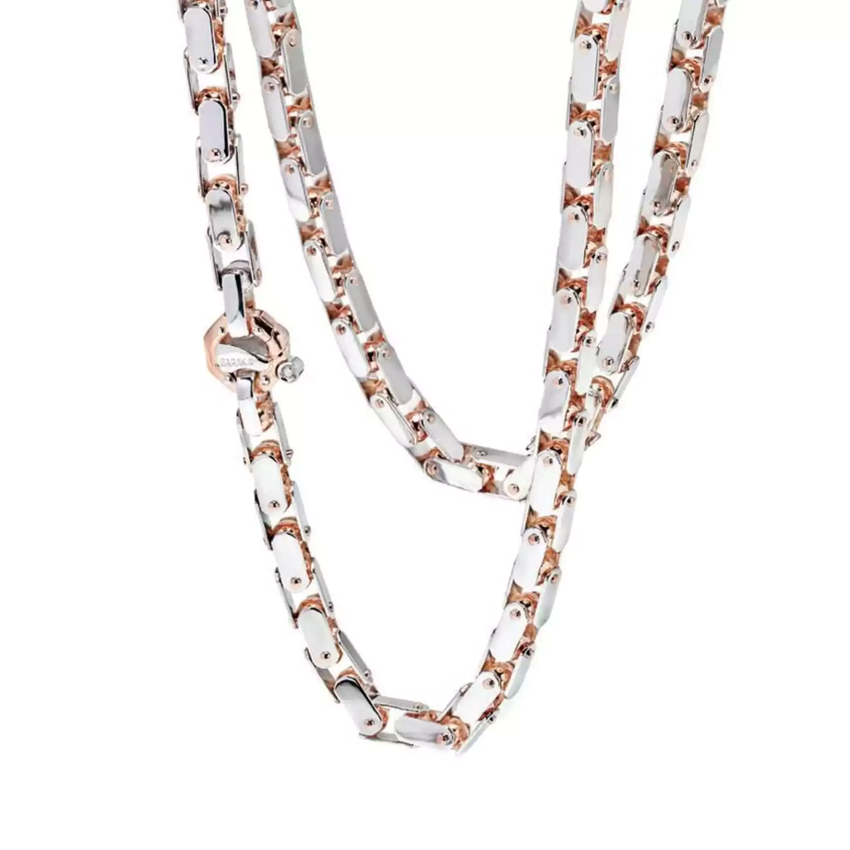 Pánský řetízek Baraka je elegantní, ale přitom výrazný šperk vhodný pro každodenní nošení i slavnostní příležitosti. Vyroben je z kombinovaného zlata 18 kt (750/1000) s lesklou povrchovou úpravou, která dodává řetízku luxusní vzhled. Délka činí 60 cm, což umožňuje nošení řetízku samostatně nebo s přívěskem dle libosti.