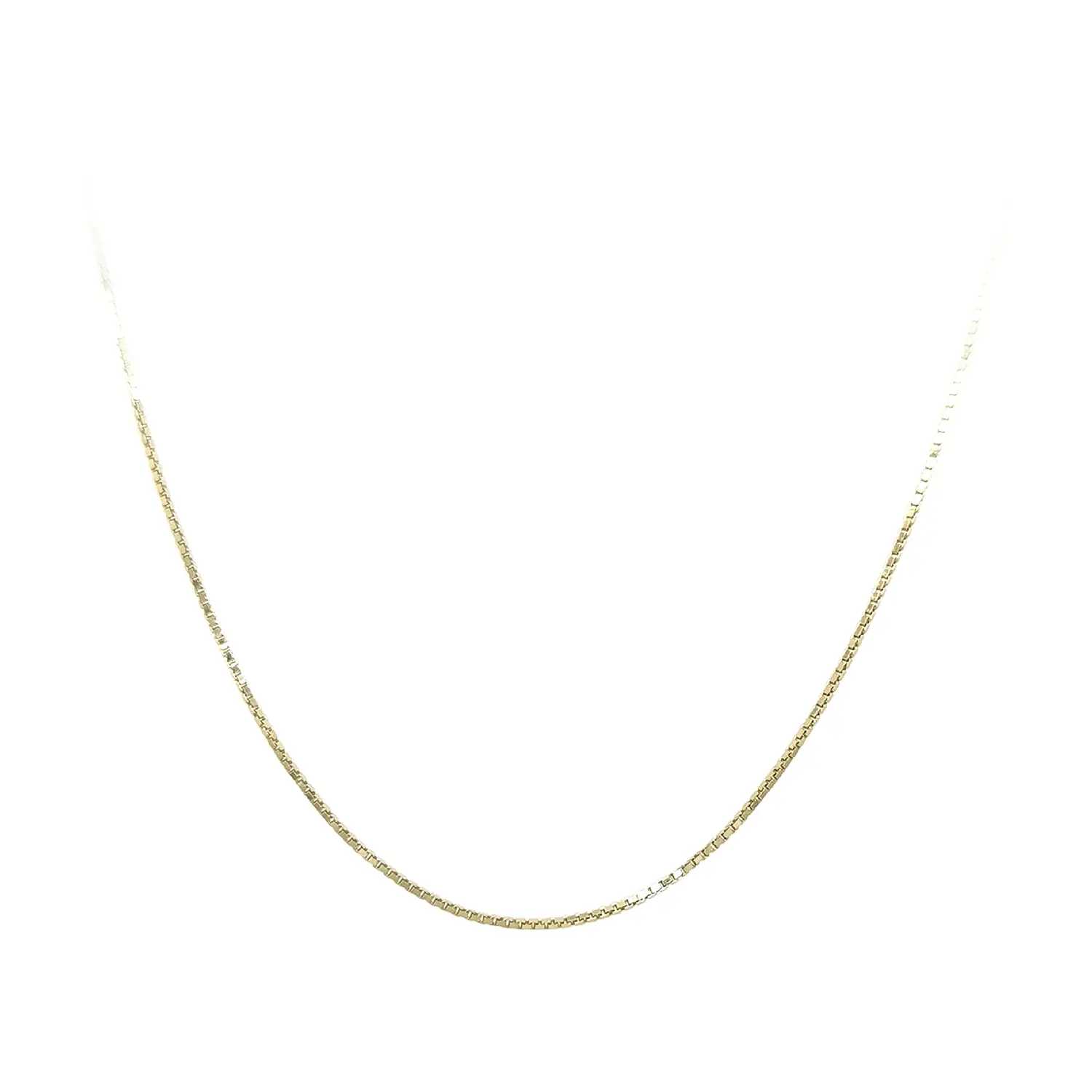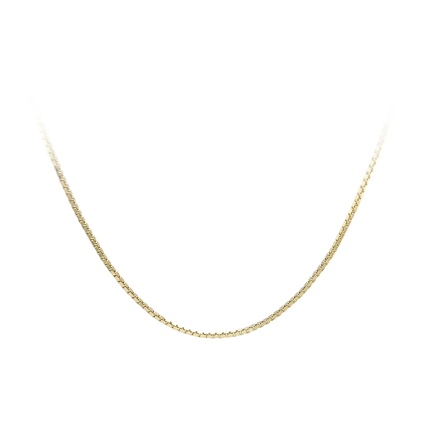Zlatý řetízek Box zaujme svou precizní strukturou drobných čtvercových oček, která vytvářejí hladkou, jemně geometrickou linii s elegantním leskem. Jeho minimalistický design působí nadčasově a snadno doplní každý styl, od nenápadného každodenního nošení až po výraznější kombinace se šperky. Šířka 0,80 mm dodává řetízku subtilní, sofistikovaný charakter.
