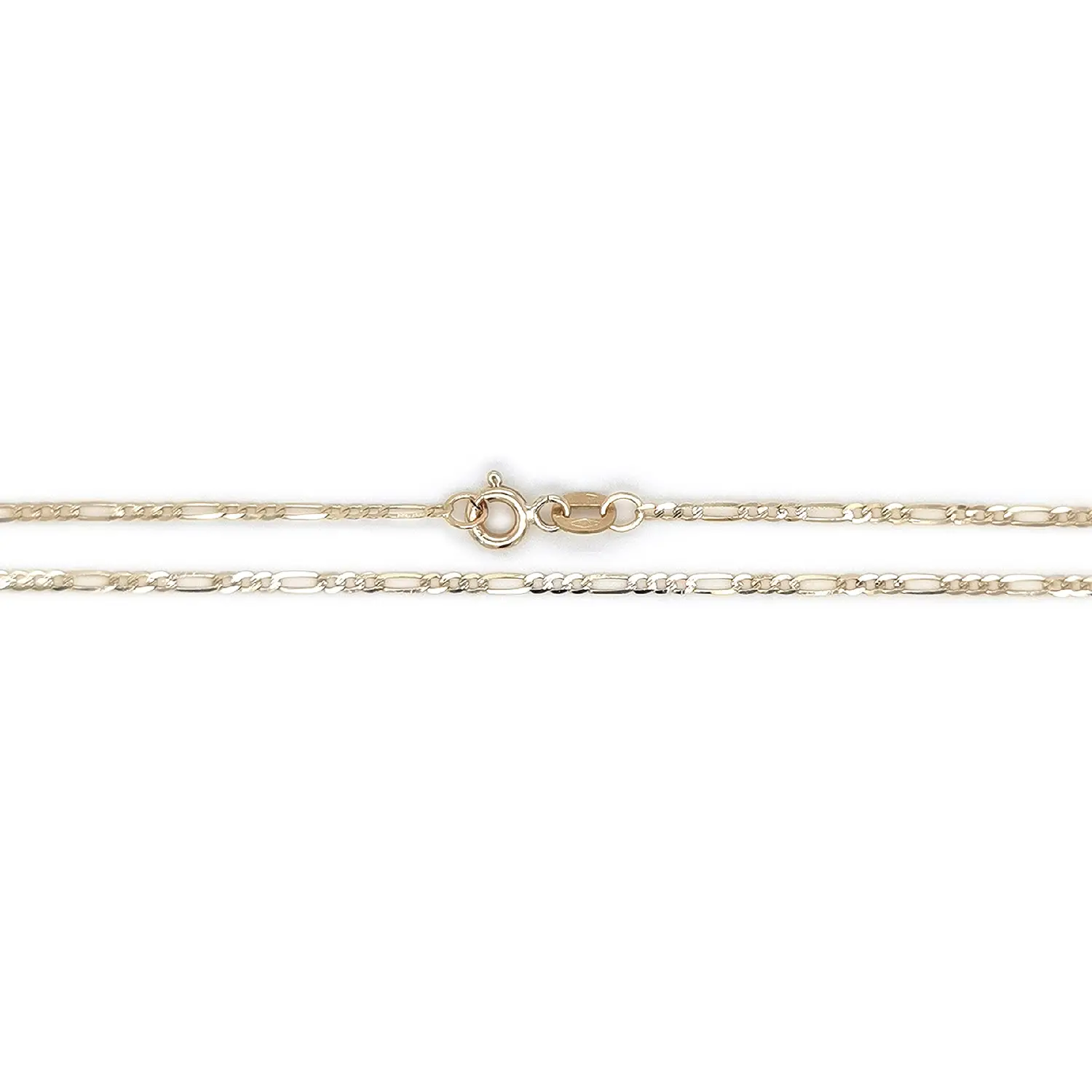Zlatý řetízek ve vzoru Figaro patří mezi nadčasové klasiky, které nikdy nevyjdou z módy. Charakteristické střídání delších a kratších článků dodává řetízku elegantní rytmus a jemný lesk, díky kterému vynikne samostatně i v kombinaci s přívěskem.