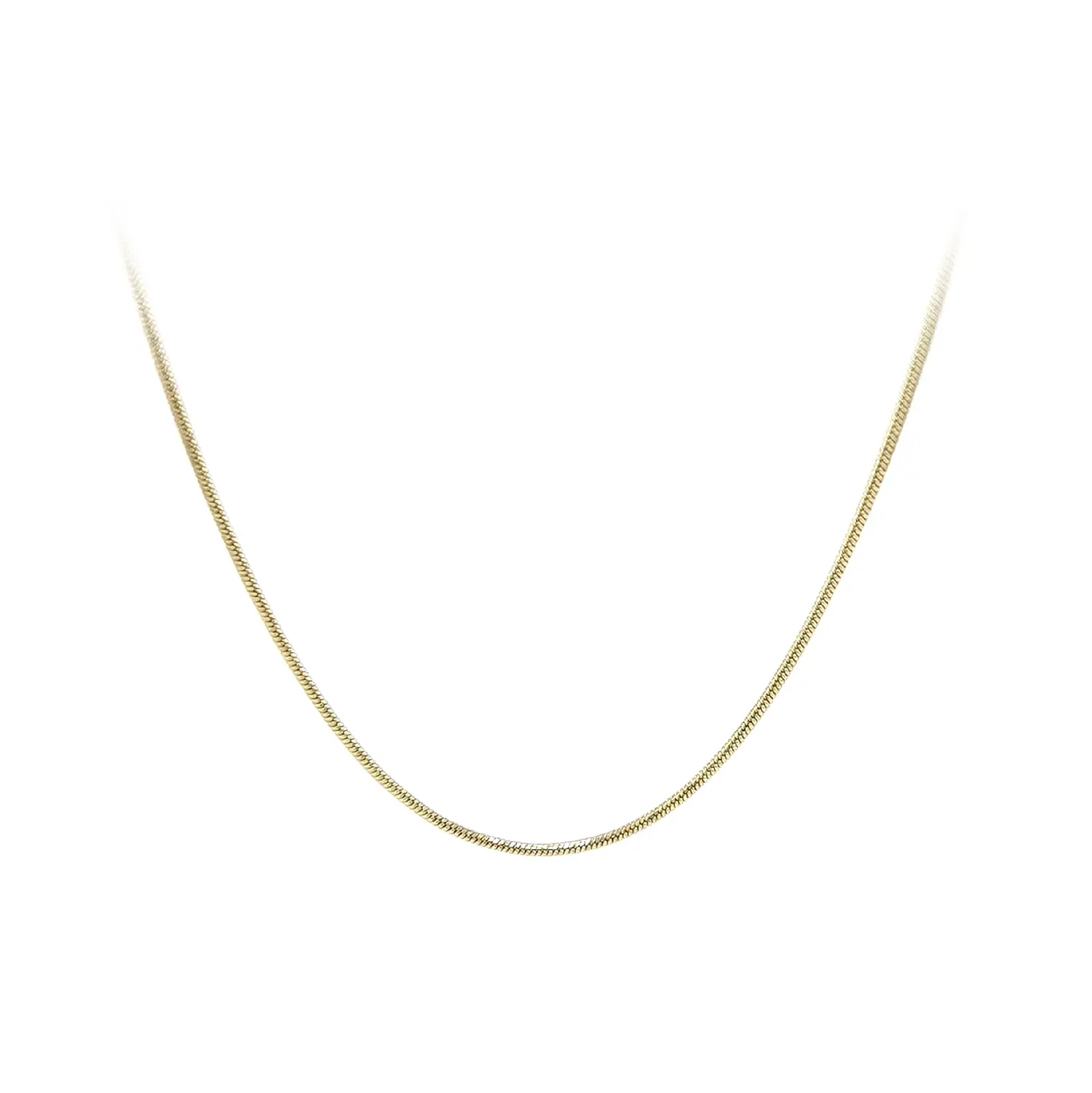 Tento zlatý řetízek v hadím vzoru zaujme hladkým, souvislým provedením, které vytváří elegantní lesk a působí velmi jemně na krku. Minimalistický design je nadčasový a snadno kombinovatelný – skvěle vynikne samostatně i jako základ pro drobný přívěsek.