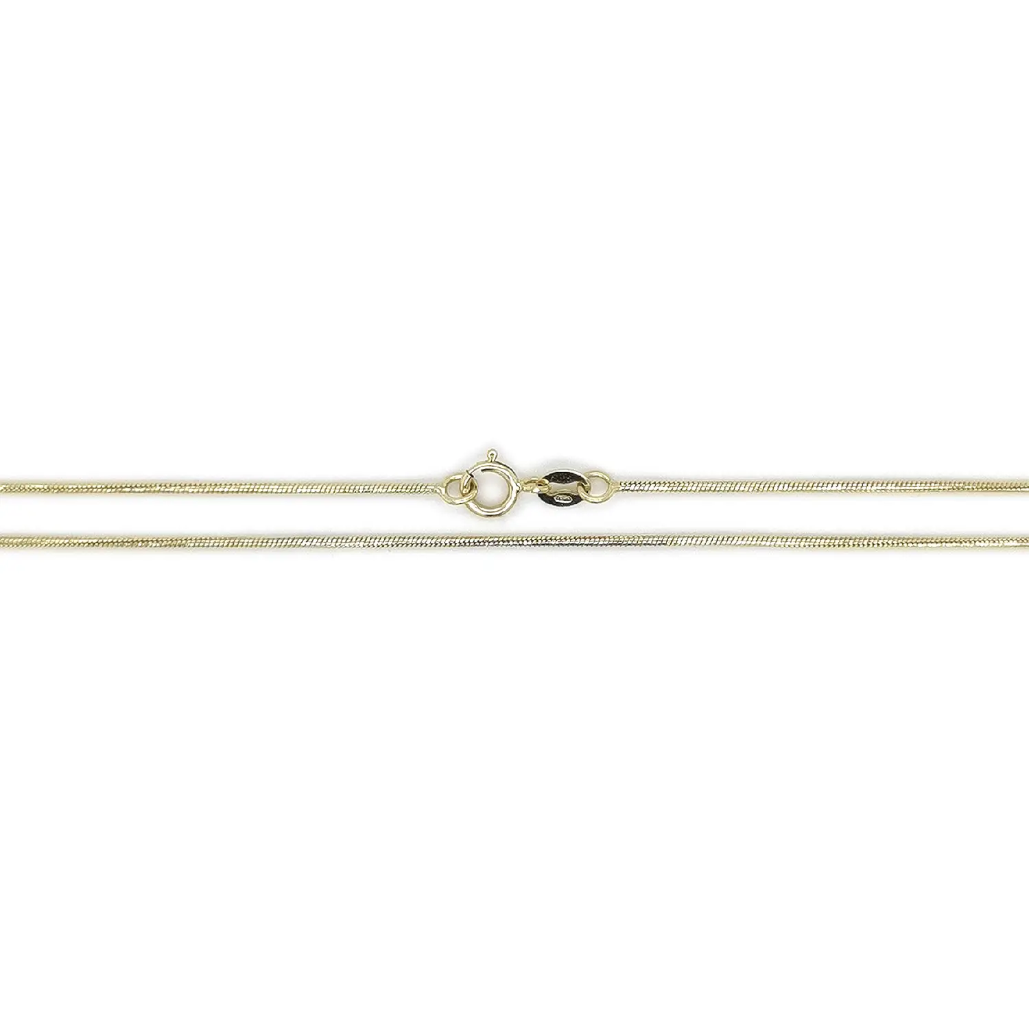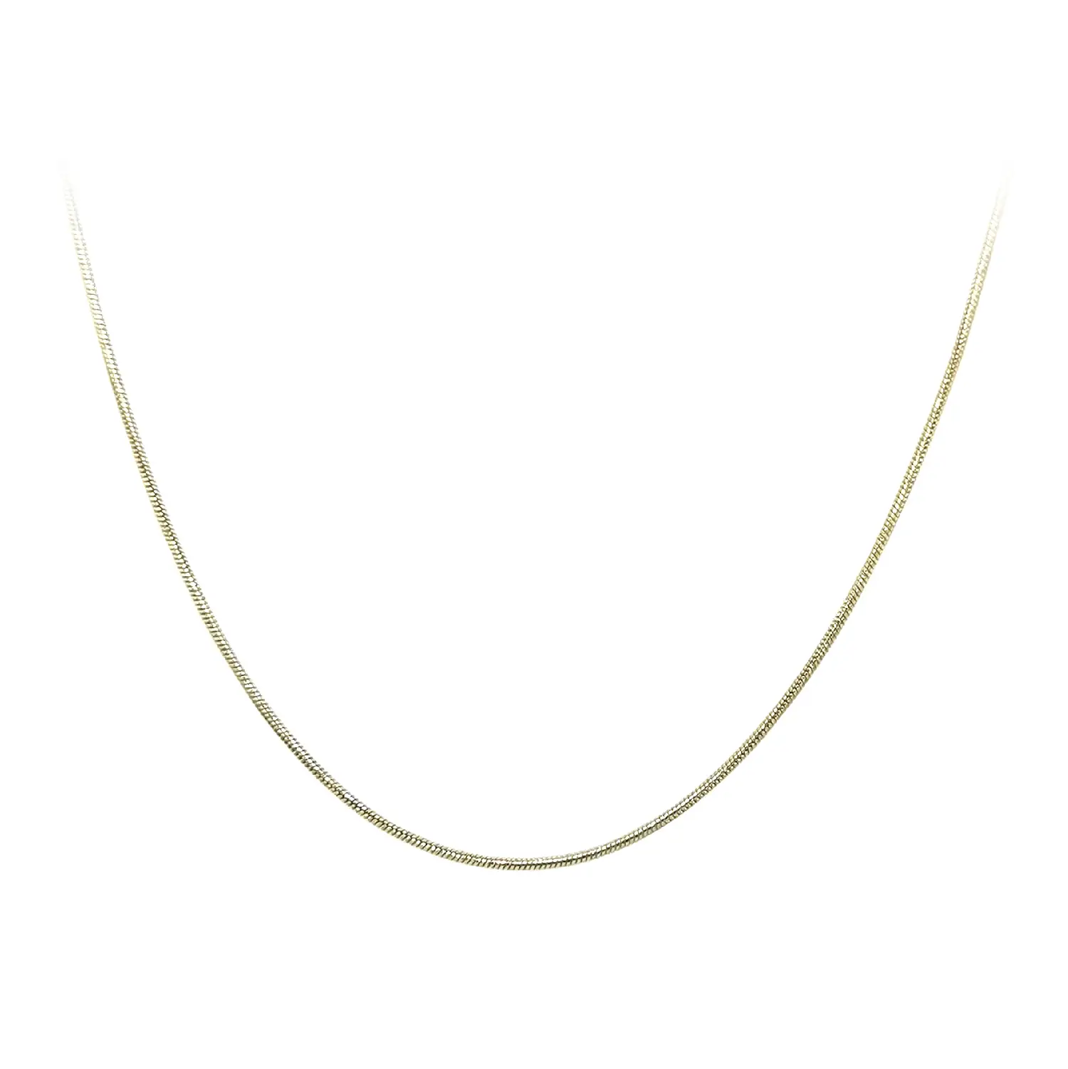 Zlatý řetízek v hadím vzoru zaujme hladkou, plynulou strukturou, která vytváří elegantní a velmi jemný vzhled. Typické husté splétání článků dodává řetízku souvislý lesk a luxusní charakter, díky kterému působí sofistikovaně při samostatném nošení i v kombinaci s přívěskem.