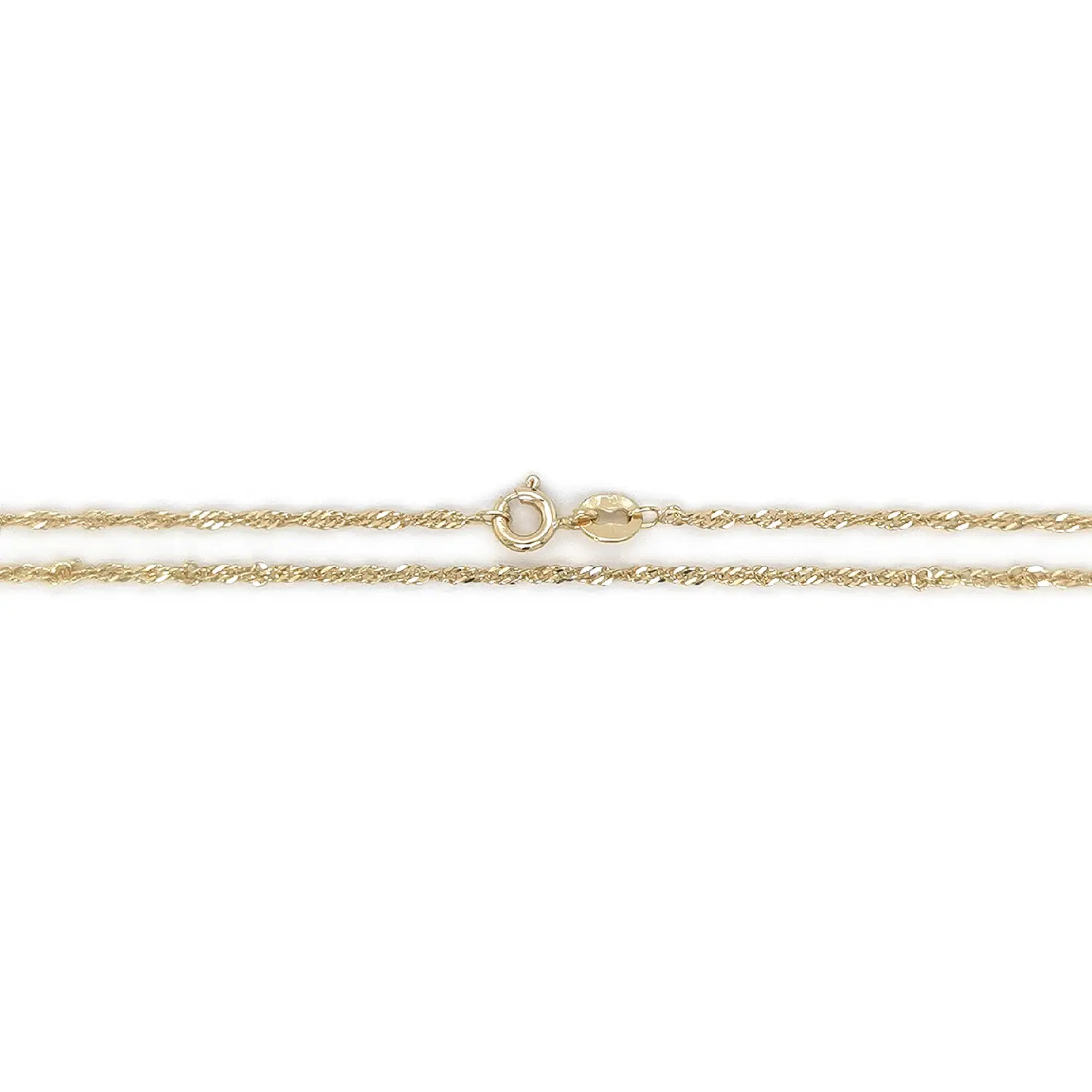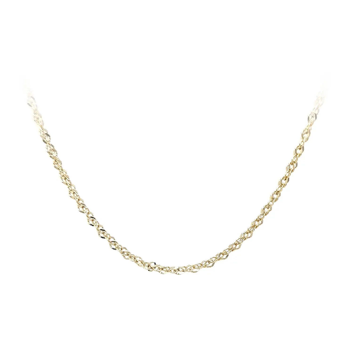 Zlatý řetízek ve vzoru Singapur zaujme svou jemně kroucenou strukturou, která krásně odráží světlo a dodává šperku elegantní, živý lesk. Precizně provedené články působí lehce a sofistikovaně, přičemž šířka 1,60 mm zajišťuje vyvážený vzhled – dostatečně výrazný, ale stále decentní pro každodenní nošení.